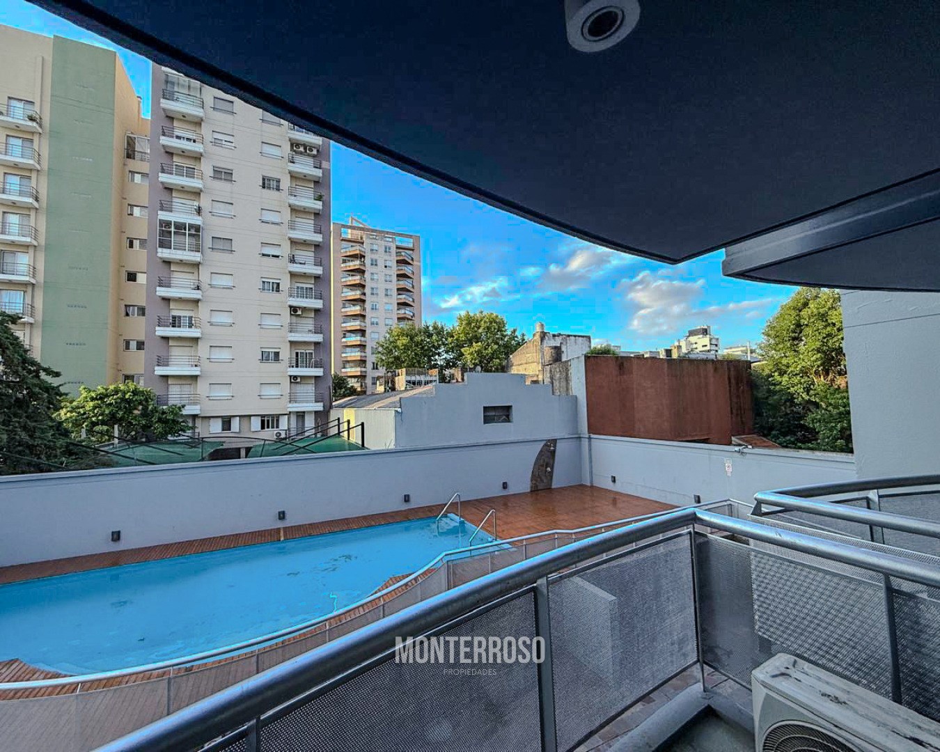 Ubicado en primer uso al contra frente, con vistas al solárium y piscina - Cuenta con un estar comedor con balcón, cocina, baño completo y 1 dormitorio con placard y balcón. Cochera en subsuelo El edificio cuenta con solárium, piscina y sector parrillas Contrato 24 meses - Ajustes trimestrales IPC