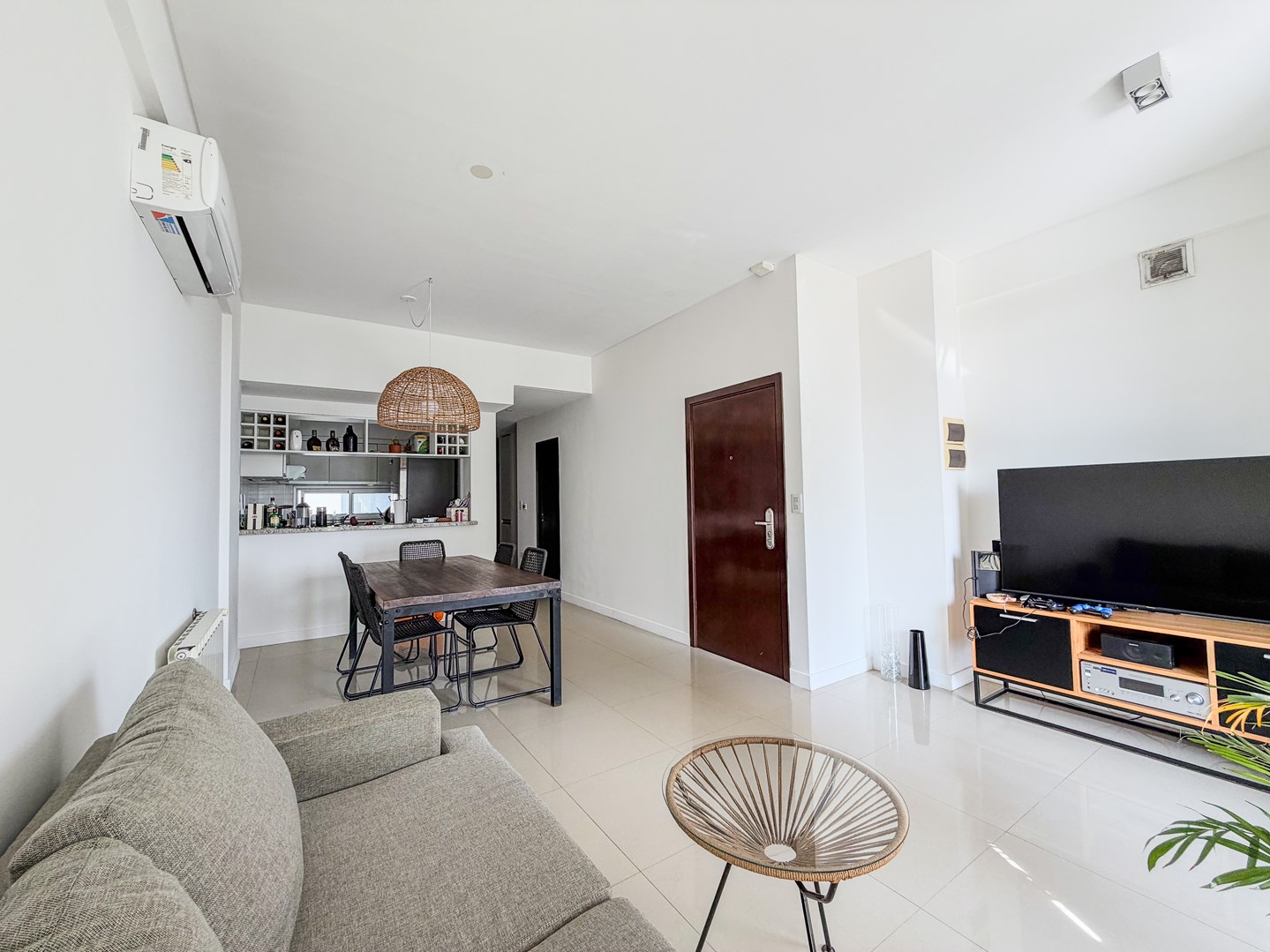 Depto. 3 ambientes con cochera en subsuelo - Semipiso - 6° al frente con orientación Este - Muy luminoso - Amplio estar comedor con amplio balcón al frente con vista al rio, cocina integrada totalmente amueblada, toilette, baño completo y 2 dormitorios con placard (1 de ellos con balcón). Calefacción por caldera dual y radiadores. Aire split. Excelente estado.